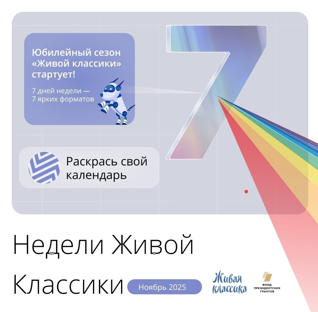 ⚡С 1 по 30 ноября крупнейший в России проект по поддержке чтения «Живая классика» проводит «Недели «Живой классики»⚡ 📍Это серия мероприятий и событий в библиотеках📚 и школах, учреждениях дополнительного образования России. Это способ рассказать о конкурсе юных чтецов, привлечь к программам фонда «Живая классика» новых участников👫, помочь библиотекам в их работе по популяризации чтения и качественной литературы для подростков. 💥 НЕДЕЛЯ "ЖИВОЙ КЛАССИКИ" В НАШЕЙ ШКОЛЕ ПРОЙДЕТ С 17.11 25г. ПО 21.11.25г. Предлагаем 5 форматов, полюбившихся чтецам "Живой классики": 👉Старт-встречи с «Живой классикой» 👉Игровая классика: квизы и развлечения для любителей книг 👉Литературный киноклуб 👉Книжные клубы 👉Творческая встреча с местной писательницей Давыдовой Елизаветой. | |